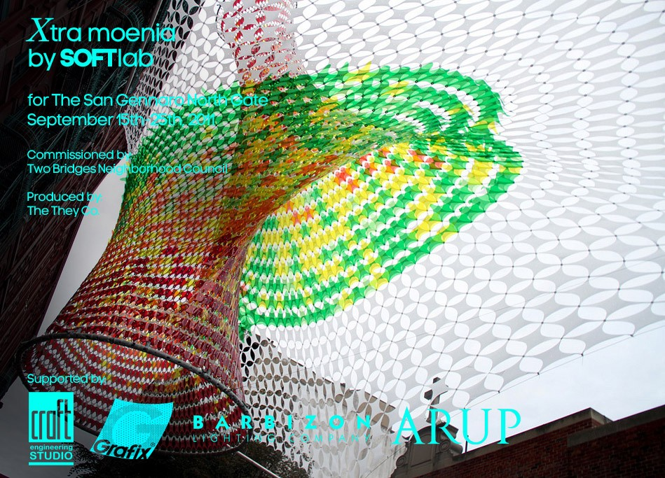 SOFTlab designed and installed a large outdoor installation in collaboration with ARUP for the North Gate of the 84th Annual Feast of San Gennaro. The eleven-day fun filled event is located in Little Italy on Mulberry St. between Houston and Prince St, NYC. Produced by The They Co. and Commissioned by Two Bridges Neighborhood Council.