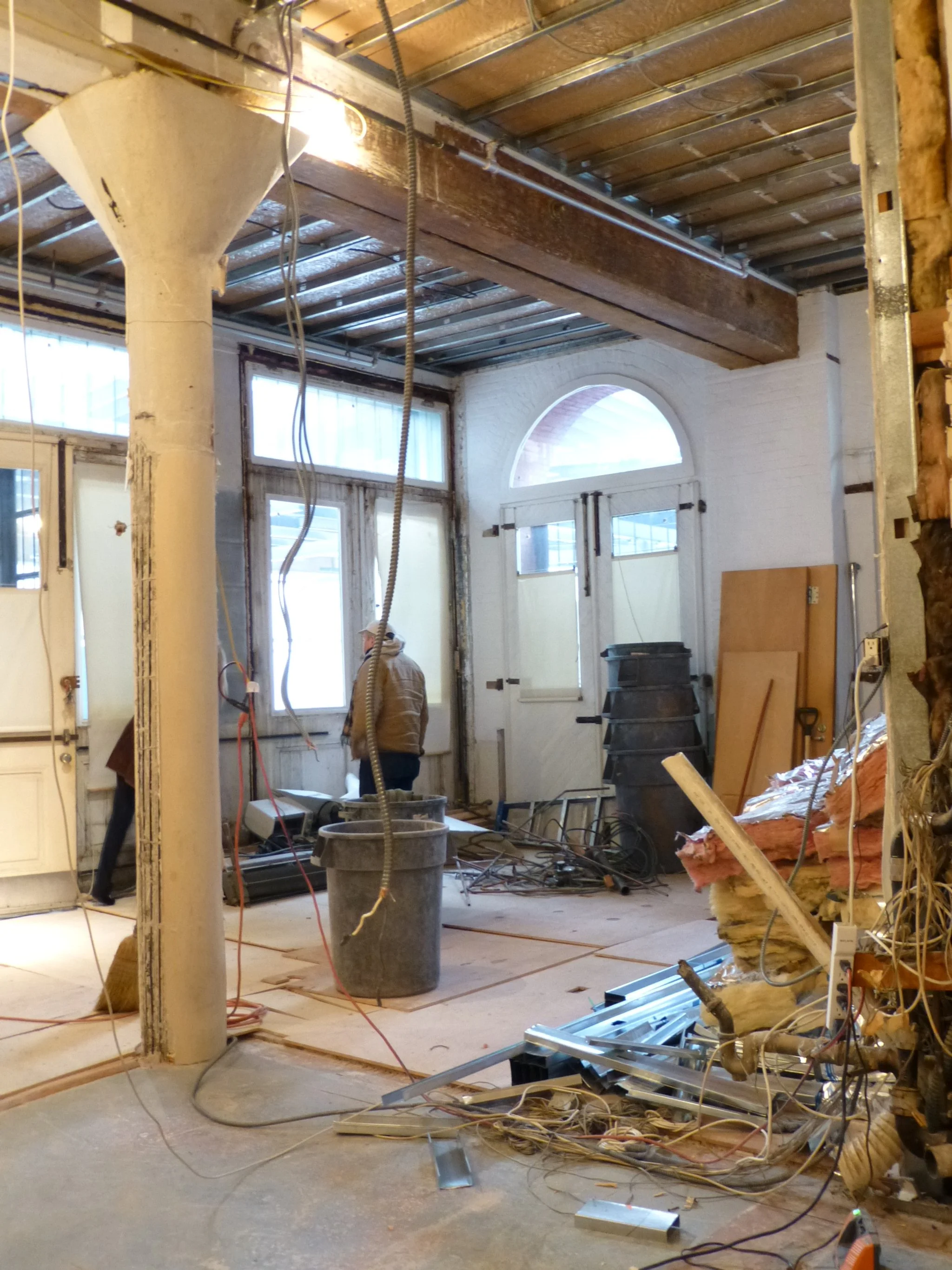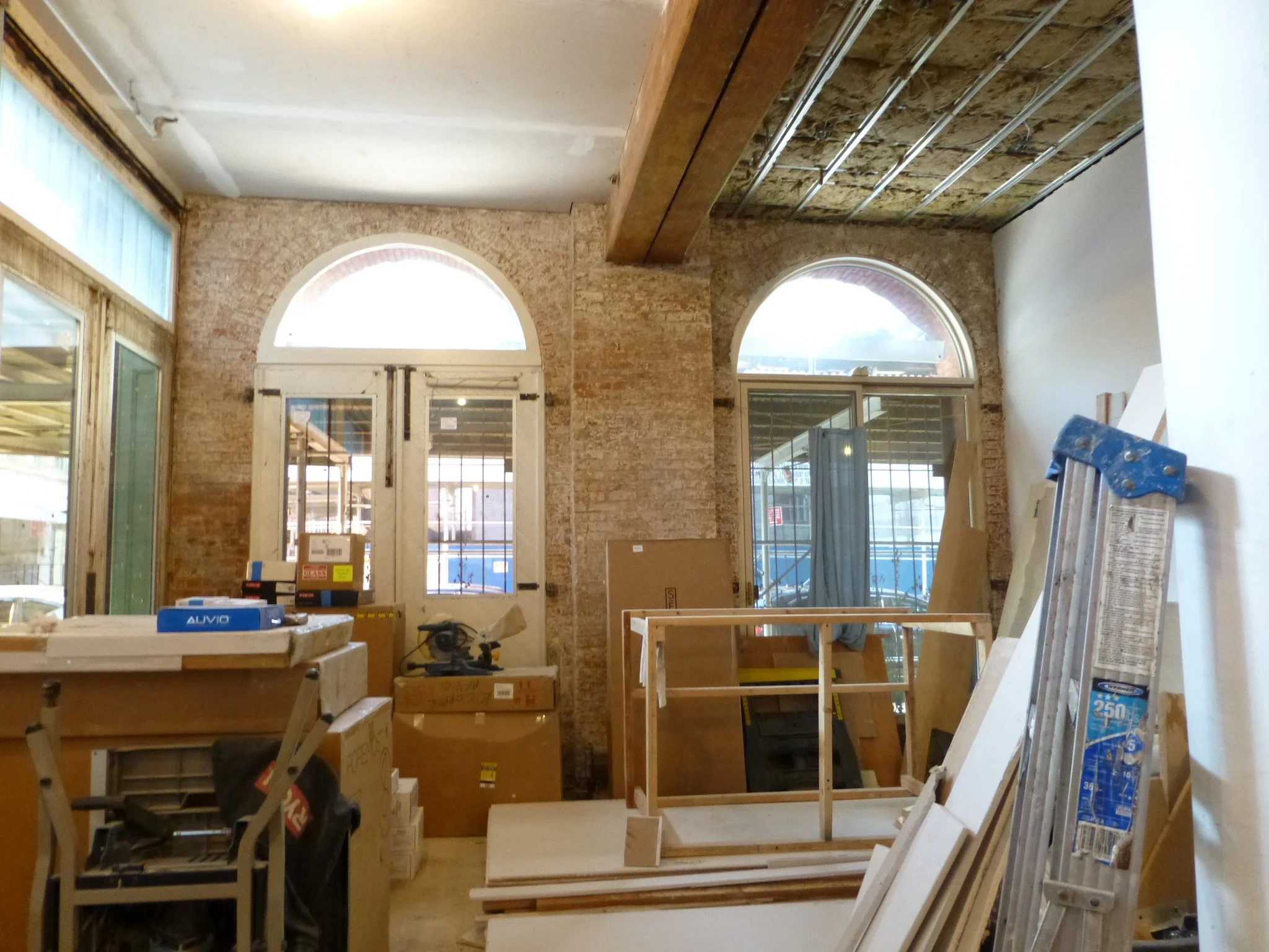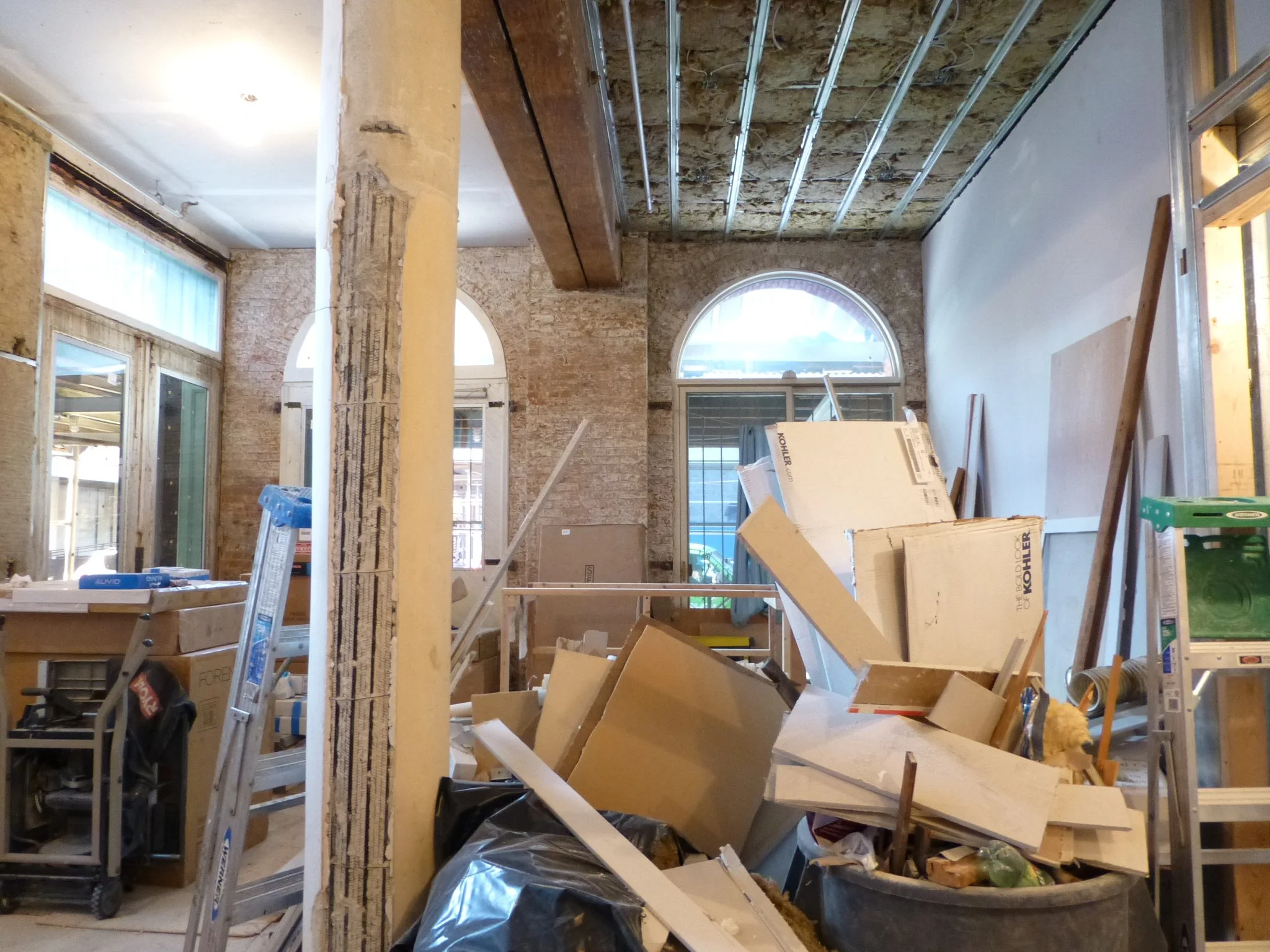 This northern Tribeca corner loft features 13 foot ceilings and unique existing details like wood beam ceilings, full-height arch windows, and exposed brick walls. This full gut renovation transformed the loft into a proper one-bedroom apartment with two full baths.
